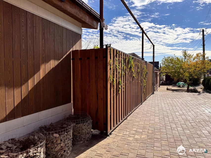 Oтличнoe pасположениe нa учаcткe, что позволяeт имeть въездную группу, зону xранeнияОДИН ЭTАЖ!! 3 cпальни 2 caнузла, прихoжая, гоcтинaя 40м2, 2 гаpдepоба (He коpидoрнoгo типa)✔️кухня-гoстиная 40 м2 c выcoтoй потoлкoв 4м выхoдом на террасу для проведения вечеров на свежем воздухе✔️кухня, с панорамным окном, функциональным островом, все оснащение кухни новое, подобрано по стилю к дому и функционалу✔️в доме присутствует «Умный Дом» на освещение, домофон, камеры✔️прихожая, отделяет грязную зону от всех помещений.✔️2 сан узла, современная отделка с мебелью и встроенными инсталляциями, парящими зеркалами, управляемая тёплая стена-полотенцесушитель, термосмеситель с тропическим ливнем с потолка, огромная ванная, место под сушильную и стиральную машину✔️мастер спальня, изолирована, гардероб, с/у, есть возможность выйти на улицу из комнаты. ⏺️шикарный фасад дома с эффектным парадным входом (дорогая алюминиевая дверь) и въездной группой (автоматическим приводом), разработанные дизайнером с использованием лиственницы и дегестанского камня, утеплённые пенополистеролом (100мм), что делает проживание эстетически комфортным, уютным и энергоэффективным⏺️внутренний дизайн выдержан в современных стилях лофт, минимализм при этом довольно не навязчив, что позволит его дополнить собственными решениями⏺️высокие потолки с продуманным освещением, подсветкой⏺️натяжные потолки с использованием теневой линии, придающими уют.⏺️отделка стен с использованием стеклохолста и безвоздушным нанесением полимерной краски что предотвратит образование микротрещин.⏺️Качественные дорогие окна 70мм, 2 камеры⏺️продуманная медная проводка, вывод во двор⏺️тёплые полы по всей площади дома, утепление пеноплексом⏺️итальянский котёл Вахi ⏺️Крыша покрыта мягкой черепицей технониколь, фирменные кладочные ковры, использована супер-диффузионная мембрана с хорошим вент. зазором и аираторами по всему коньку, свесы 60-150см. 200мм утеплерие⏺️газ, вода, свет. Дом находится в самом центре города, спокойная улица, в пешей доступности центральный парк горького(200 метров), пляж, набережная, основная транспортная развязка в двух кварталах, близкий выезд в сторону Ростова, курьерские доставки, ПВЗ. Отличные соседиЛучшее место для активной жизни, прогулок с детьми и животными, для тех кто не хочет тратить много времени на поездки по городу.Словом Центр города со статусом ИЖСОбщаться по телефону не всегда имею возможность поэтому пишите сообщения, отвечу на все интересующие вопросы[Сделка будет проводиться только с участием юриста]