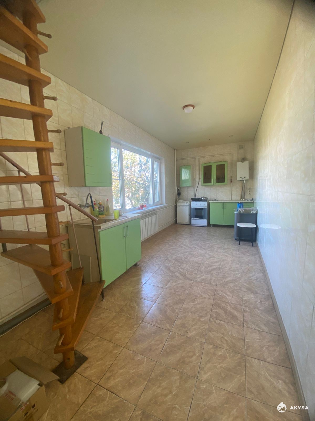 На первом этаже расположены : просторная прихожая, светлая кухня, уютная комната, а также совмещенный санузел