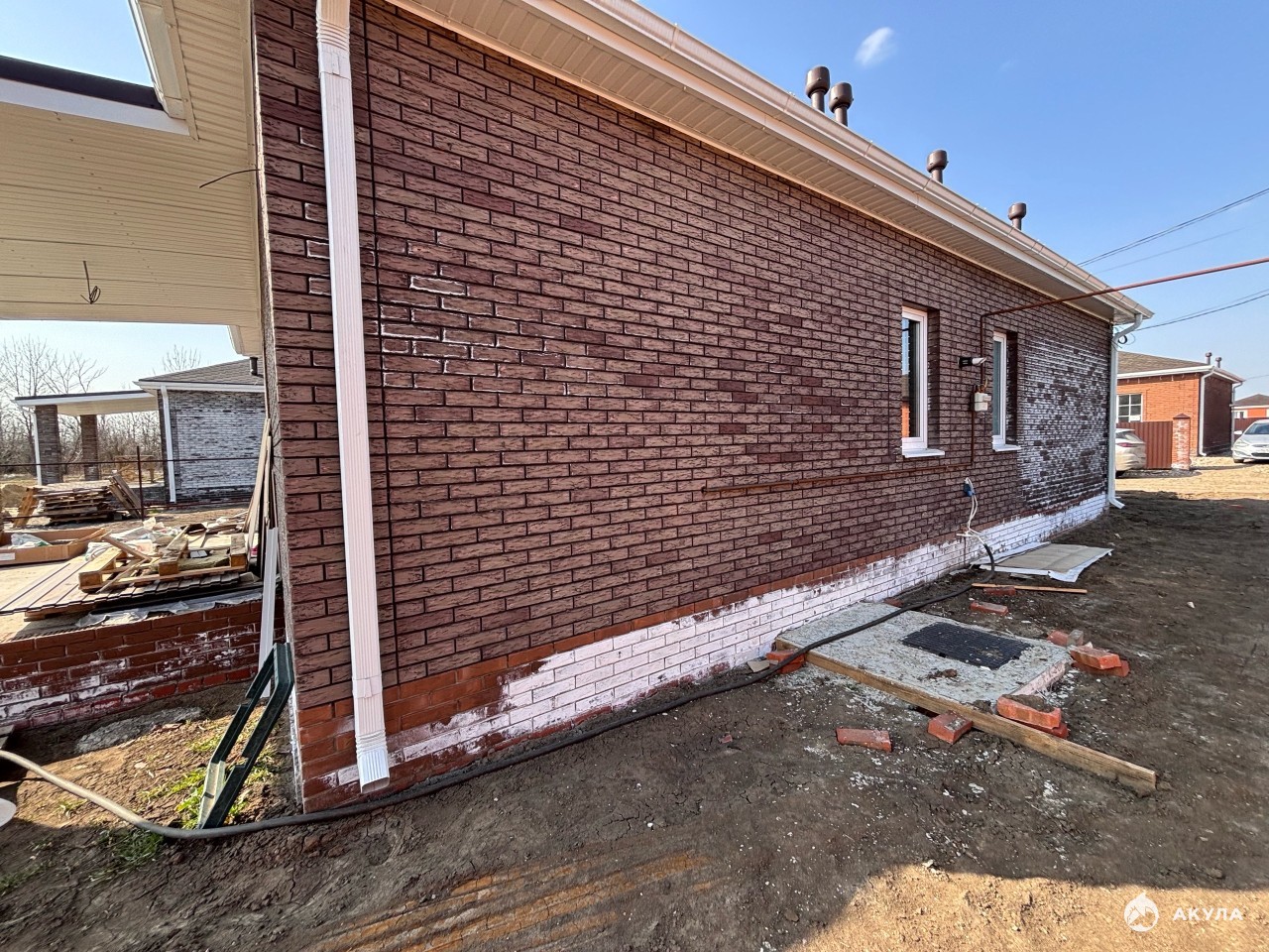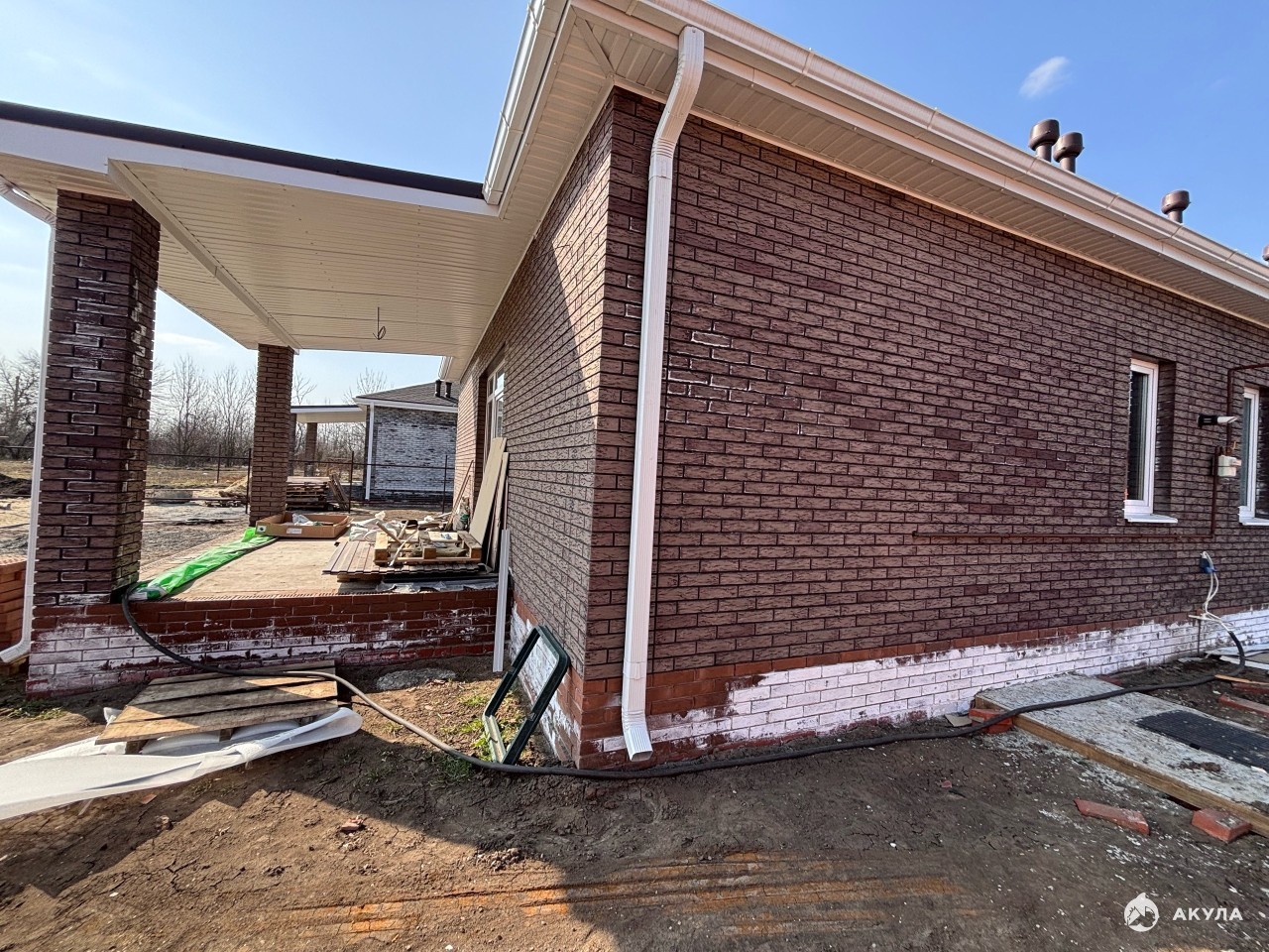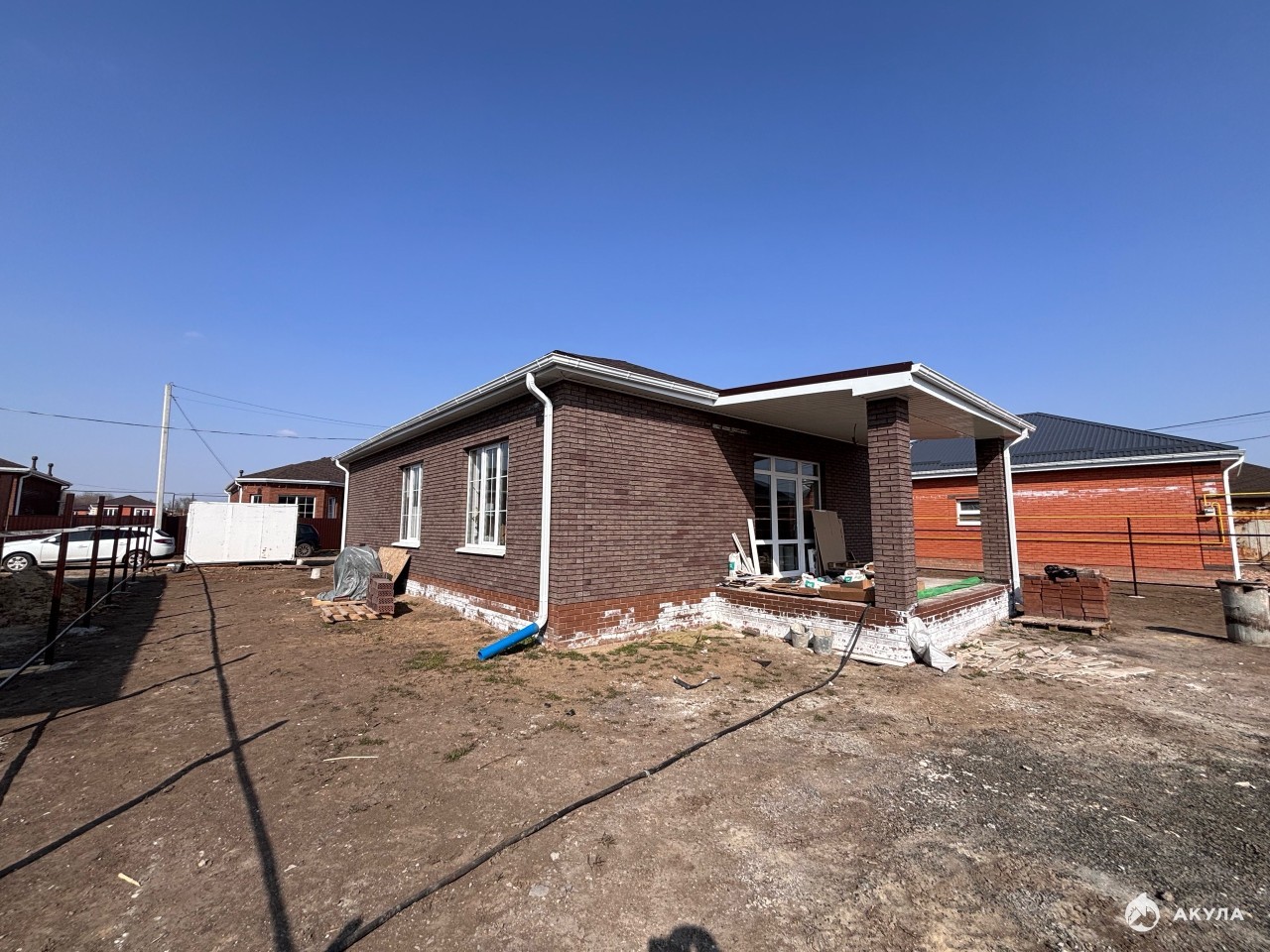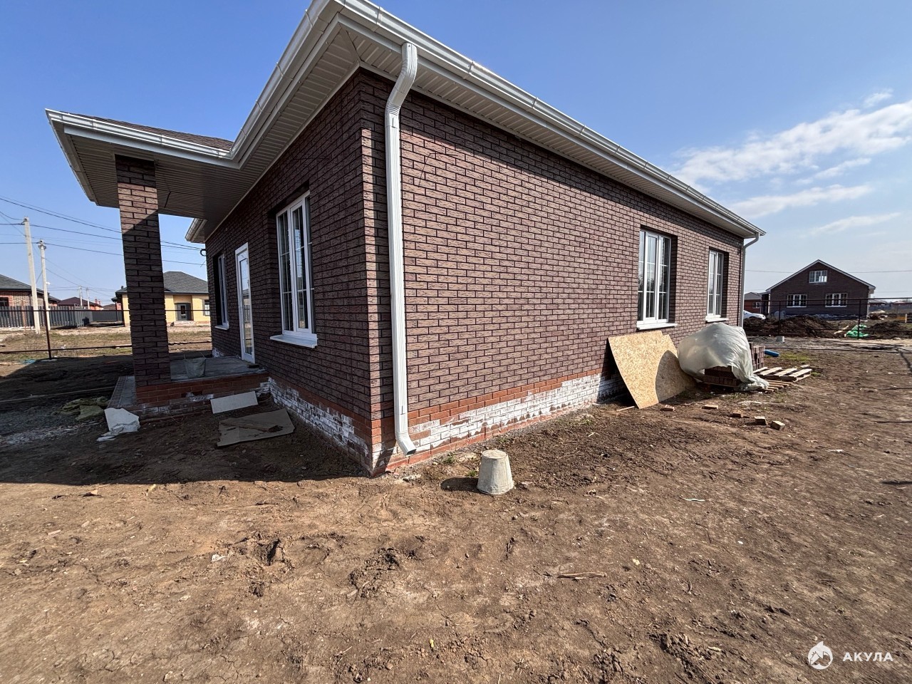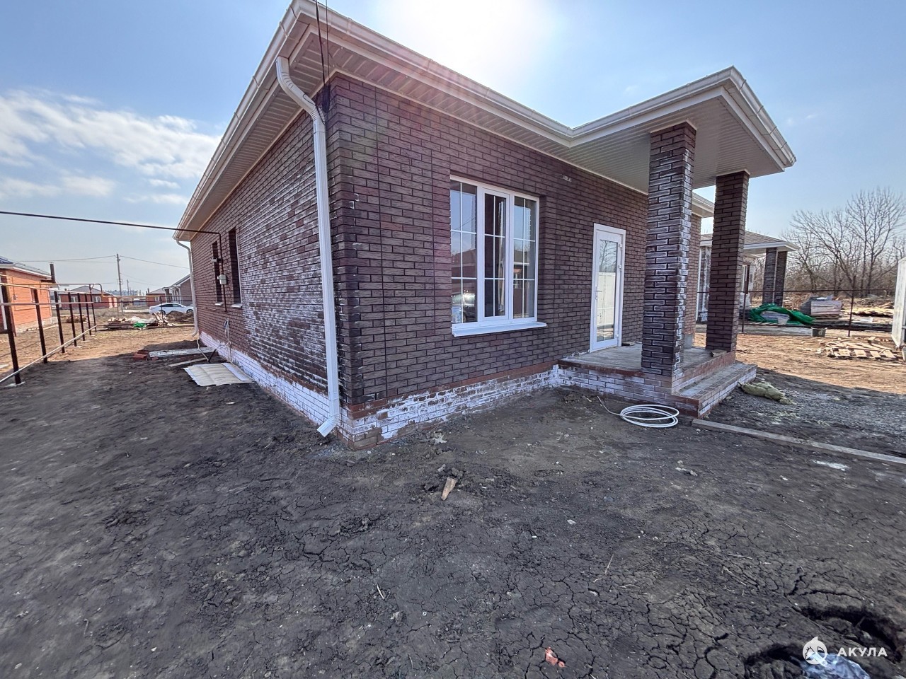 Состояние дома стройвариант в предчистовой отделке: стяжка, штукатурка, электрика, теплый пол во всем доме , скважина с автоматикой и полностью водяной разводкой по дому. В стоимость дома входят так же полностью забор по периметру без въездной группы.